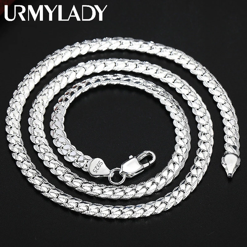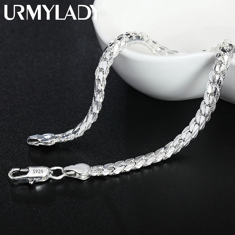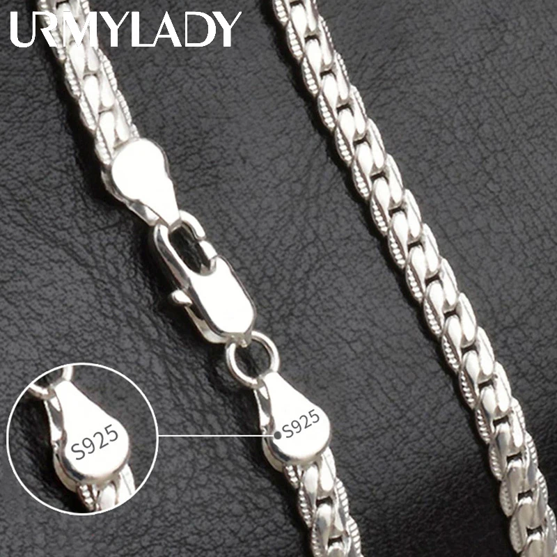 Urmylady 925 prata esterlina 2 peças 6mm corrente lateral completa colar pulseira para mulheres homens moda conjuntos de jóias presente de casamento