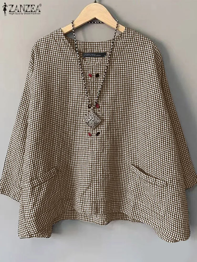 Tipo de item: Blusas Material: 80% poliéster + 20% algodão Cores: preto, azul, marrom O pacote inclui: 1 blusas Corte: Solto Estiramento: não extensível Colar: pescoço redondo Estilo de manga: regular Comprimento da manga: manga 3/4 Características: Blusas evasê Padrão: Verifique Espessura: Padrão Estilo: estilo casual, japonês e coreano, elegante, simples Estação: primavera, verão, outono Ocasião: Diariamente, Simples, Casual Etiqueta: Sim Atenção: 1.Devido a diferentes computadores, pode haver uma diferença sutil de cor entre o objeto e a imagem.Por favor, não atire se você se importar.Obrigado. 2.Pode haver erro de medição manual de 1-3cm.Por favor, entenda o inconveniente. 3.Consulte o objeto real.As fotos do modelo são apenas para referência. 4. Atenção!!! Por favor, verifique a tabela de tamanhos cuidadosamente antes de fazer o pedido.”