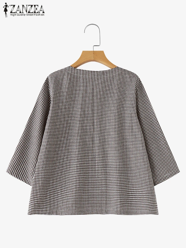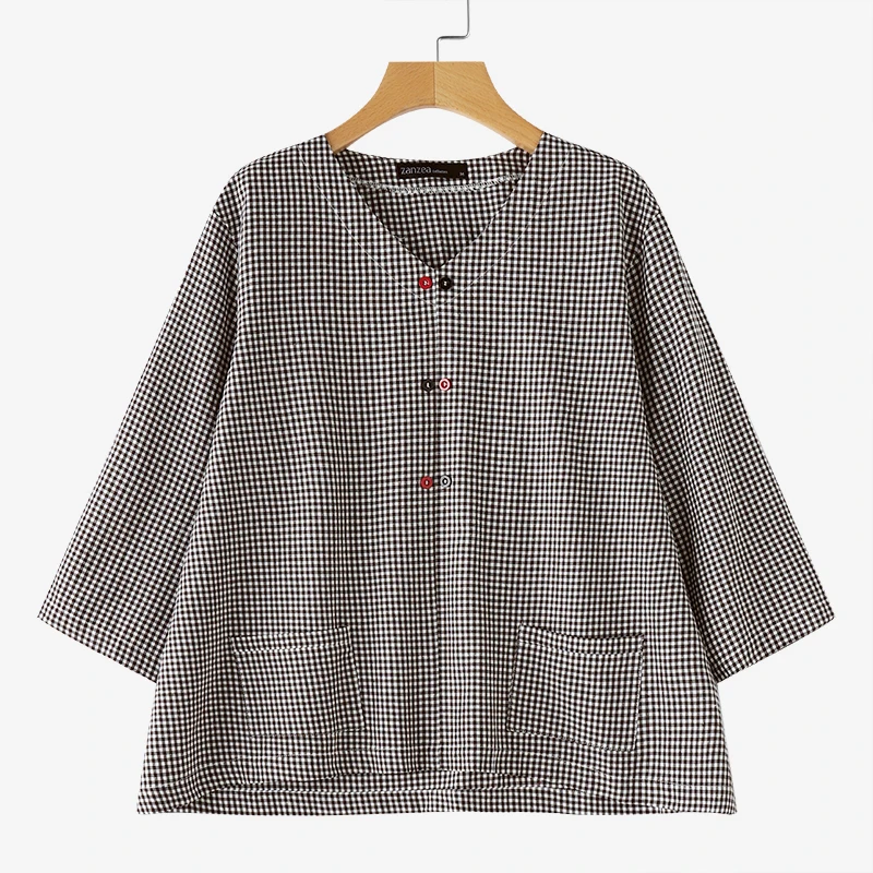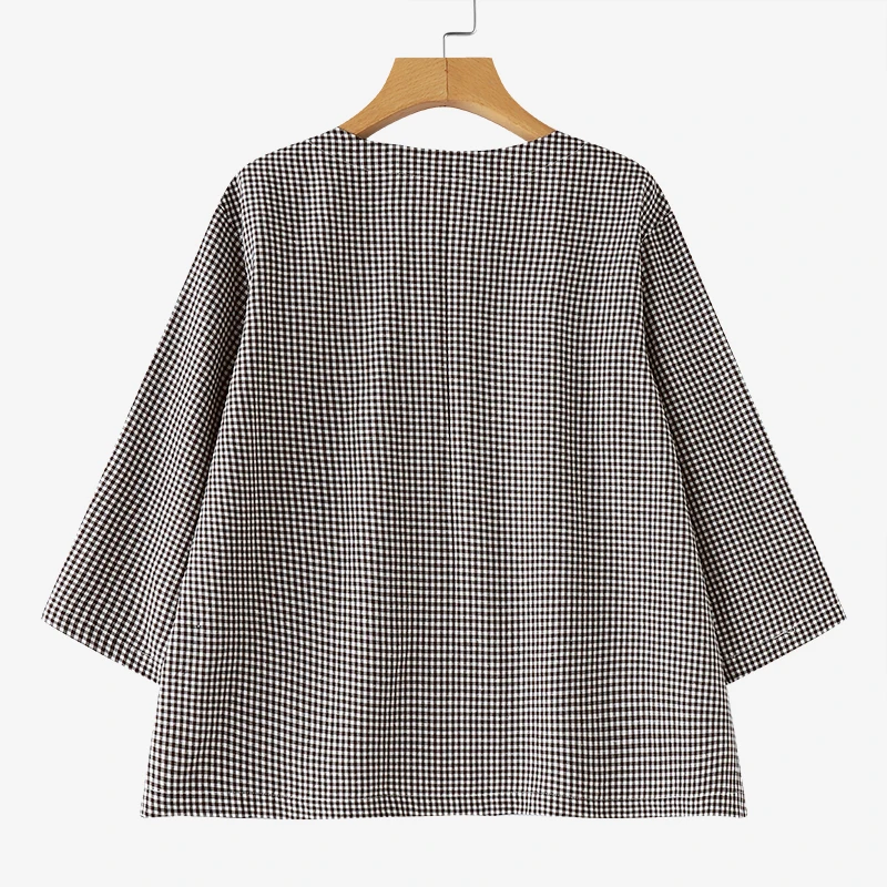 Tipo de item: Blusas Material: 80% poliéster + 20% algodão Cores: preto, azul, marrom O pacote inclui: 1 blusas Corte: Solto Estiramento: não extensível Colar: pescoço redondo Estilo de manga: regular Comprimento da manga: manga 3/4 Características: Blusas evasê Padrão: Verifique Espessura: Padrão Estilo: estilo casual, japonês e coreano, elegante, simples Estação: primavera, verão, outono Ocasião: Diariamente, Simples, Casual Etiqueta: Sim Atenção: 1.Devido a diferentes computadores, pode haver uma diferença sutil de cor entre o objeto e a imagem.Por favor, não atire se você se importar.Obrigado. 2.Pode haver erro de medição manual de 1-3cm.Por favor, entenda o inconveniente. 3.Consulte o objeto real.As fotos do modelo são apenas para referência. 4. Atenção!!! Por favor, verifique a tabela de tamanhos cuidadosamente antes de fazer o pedido.”